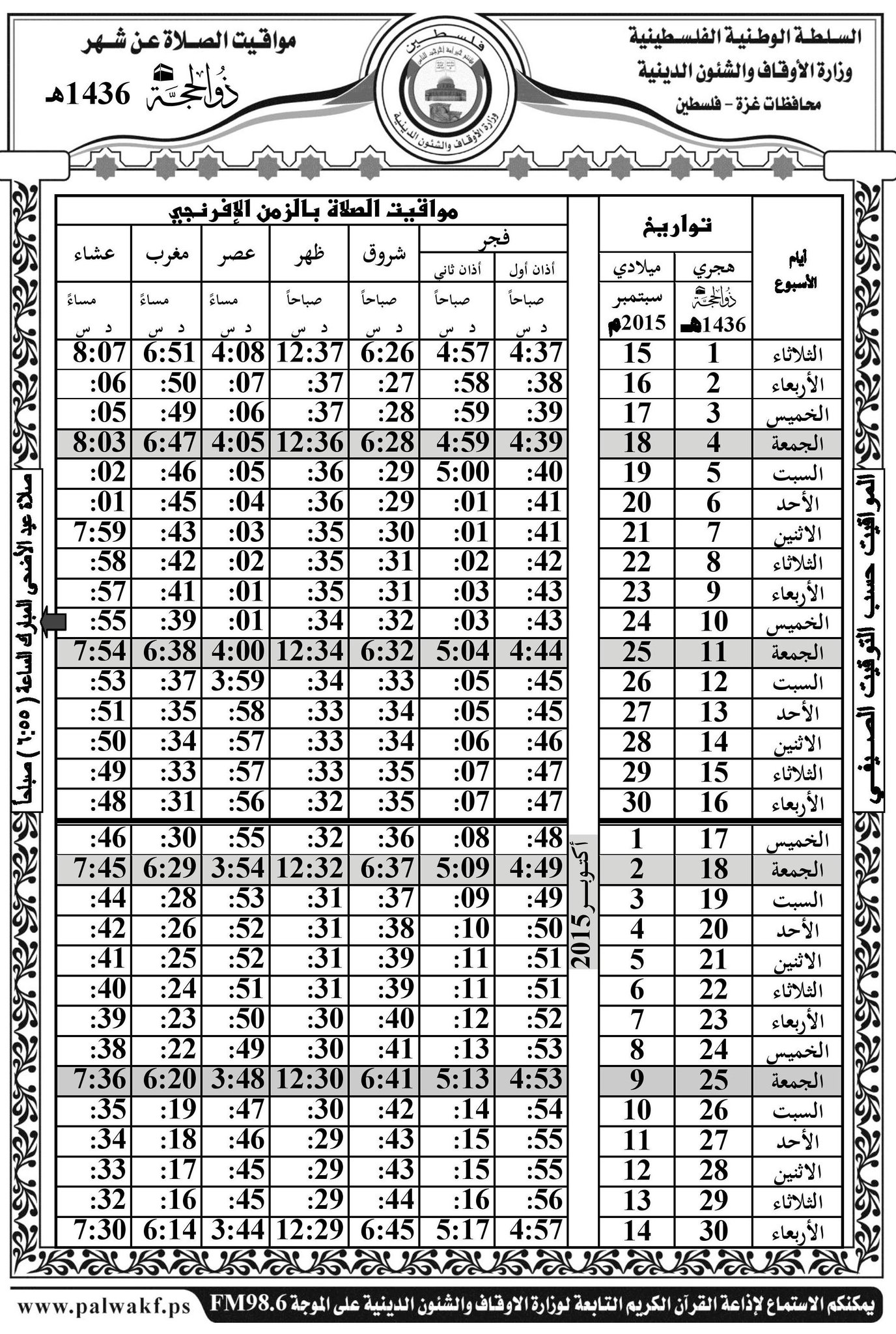 مواقيت الصلاة في غزة Twitterren مواقيت الصلاة عن شهر ذو الحجة هـ1436 غزة فلسطين Gaza صلاة Http T Co Erbf1cznak